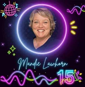 Congratulations to Mandie Lawhorn on 15 years of service. Mandie is hardworking, reliable, and has a memory like a steel trap—she remembers every detail of every change. Patients love her and often ask for her by name. She came from pediatrics and quickly became exceptional in family practice as well. She has been an amazing asset to the organization and has lived through everything here—including the building demolition and “dust story,” which she tells best. Thank you, Mandie, for your dedication.