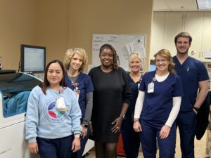 Hannah Umali, MLS (ASCT); Christy Otten, MBA, BSMLS (AMT); Dr. Akintola-Ogunremi, Pathologist; Angie Verschueren, MLT; Tifanie. Conway, MLT; Jacob Golding, MLS